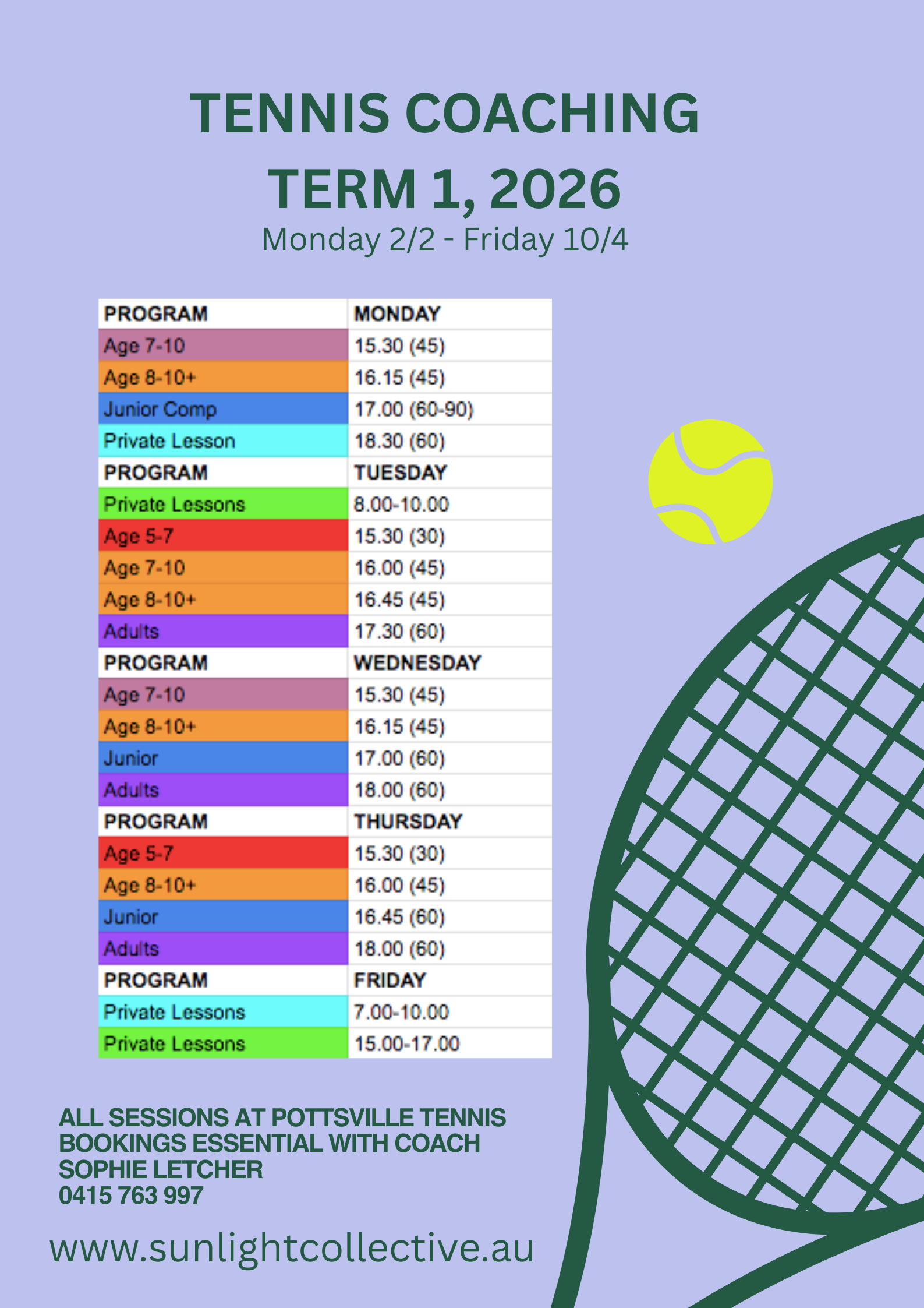 Come play, move, learn and enjoy at Sunlight Tennis.
