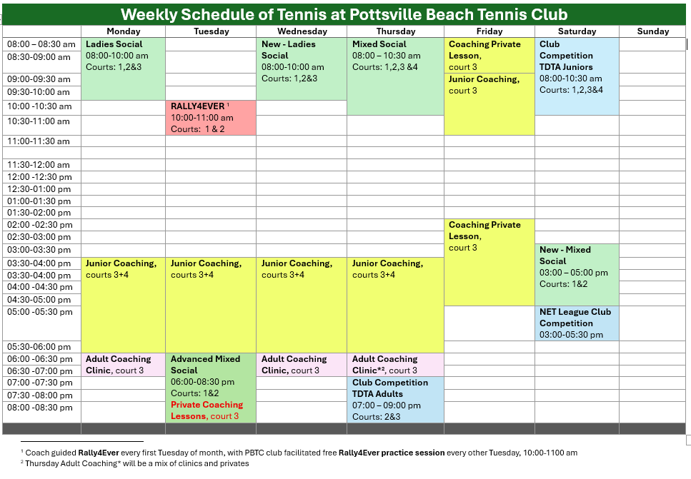 Club Weekly Schedule